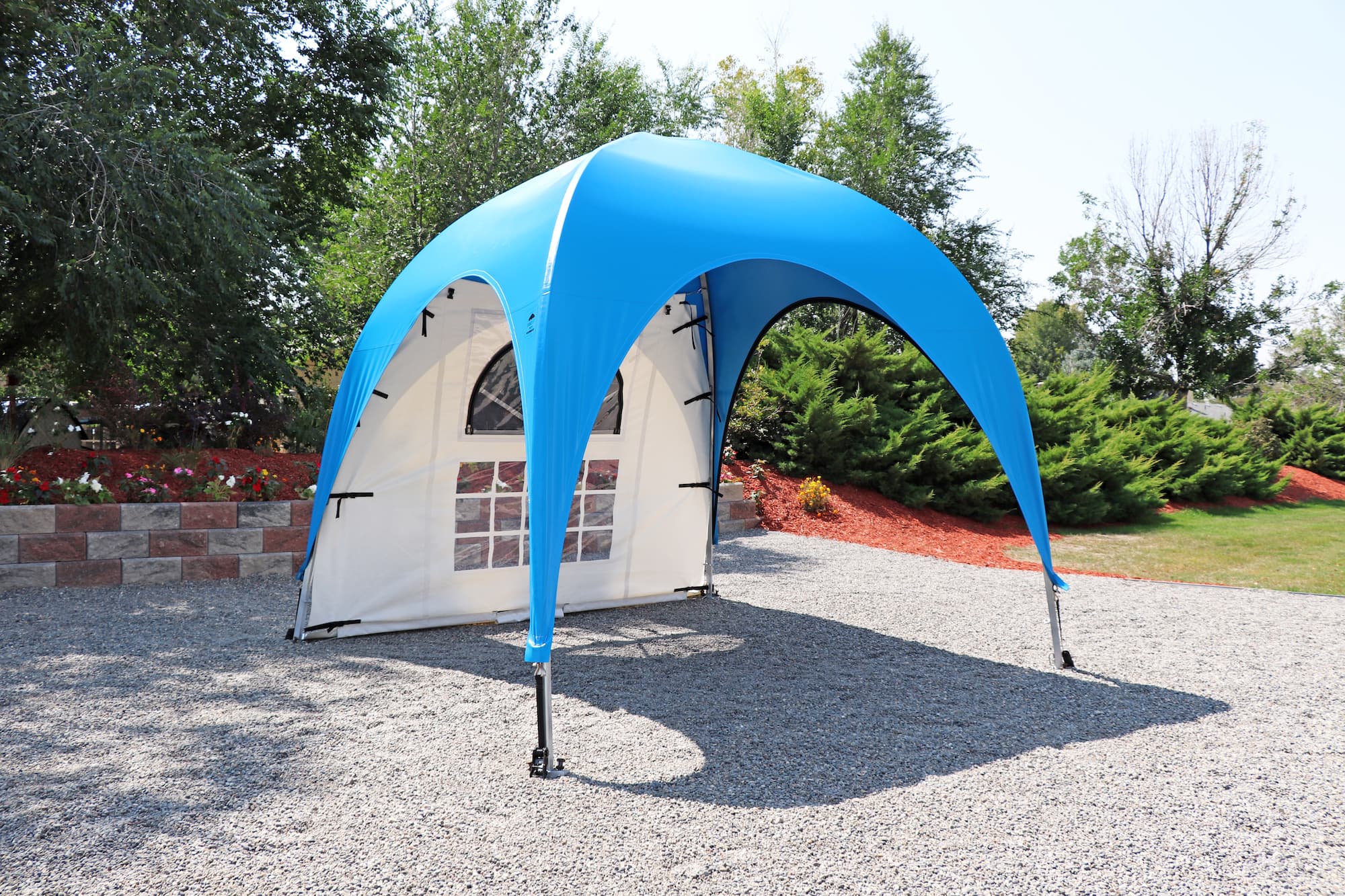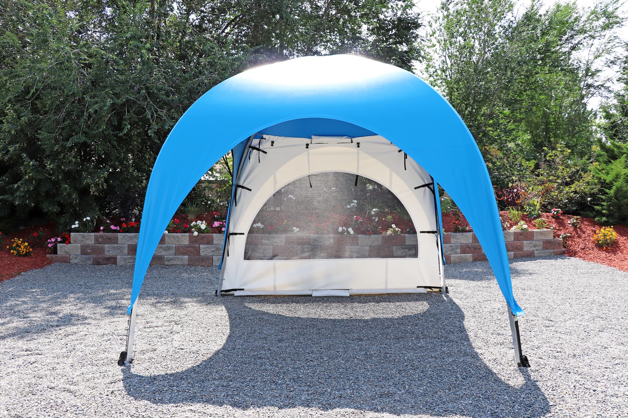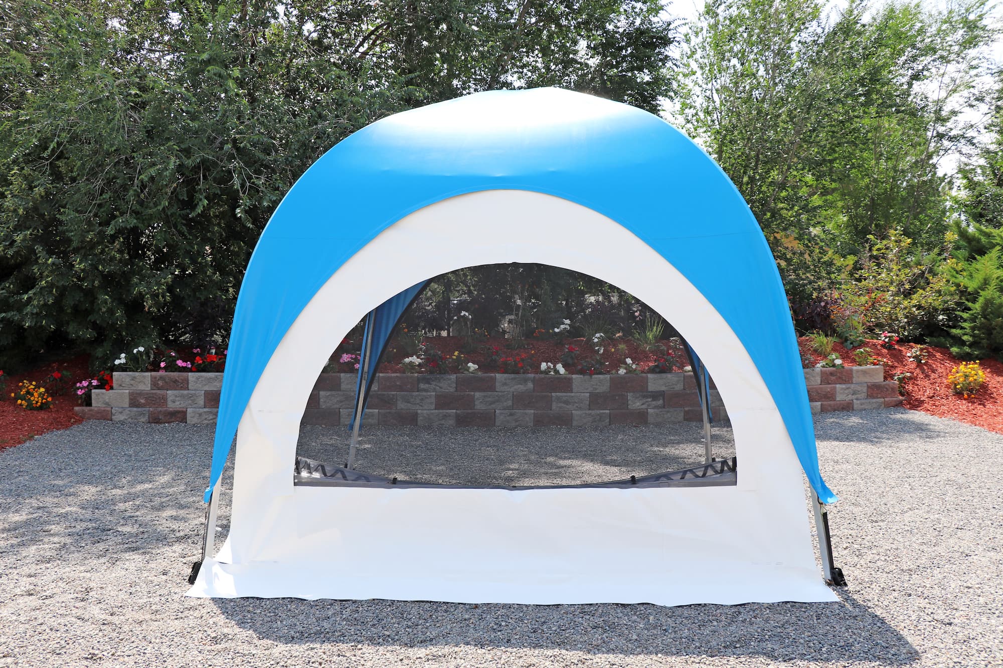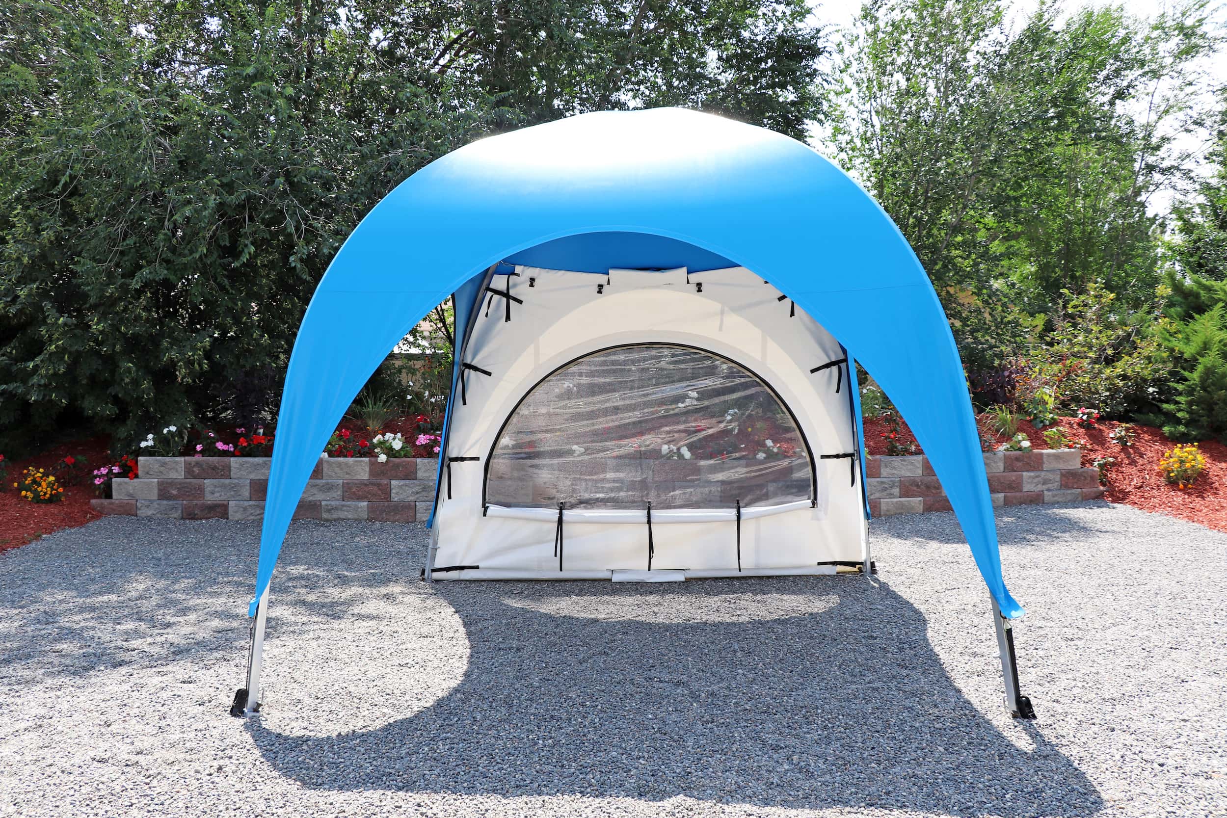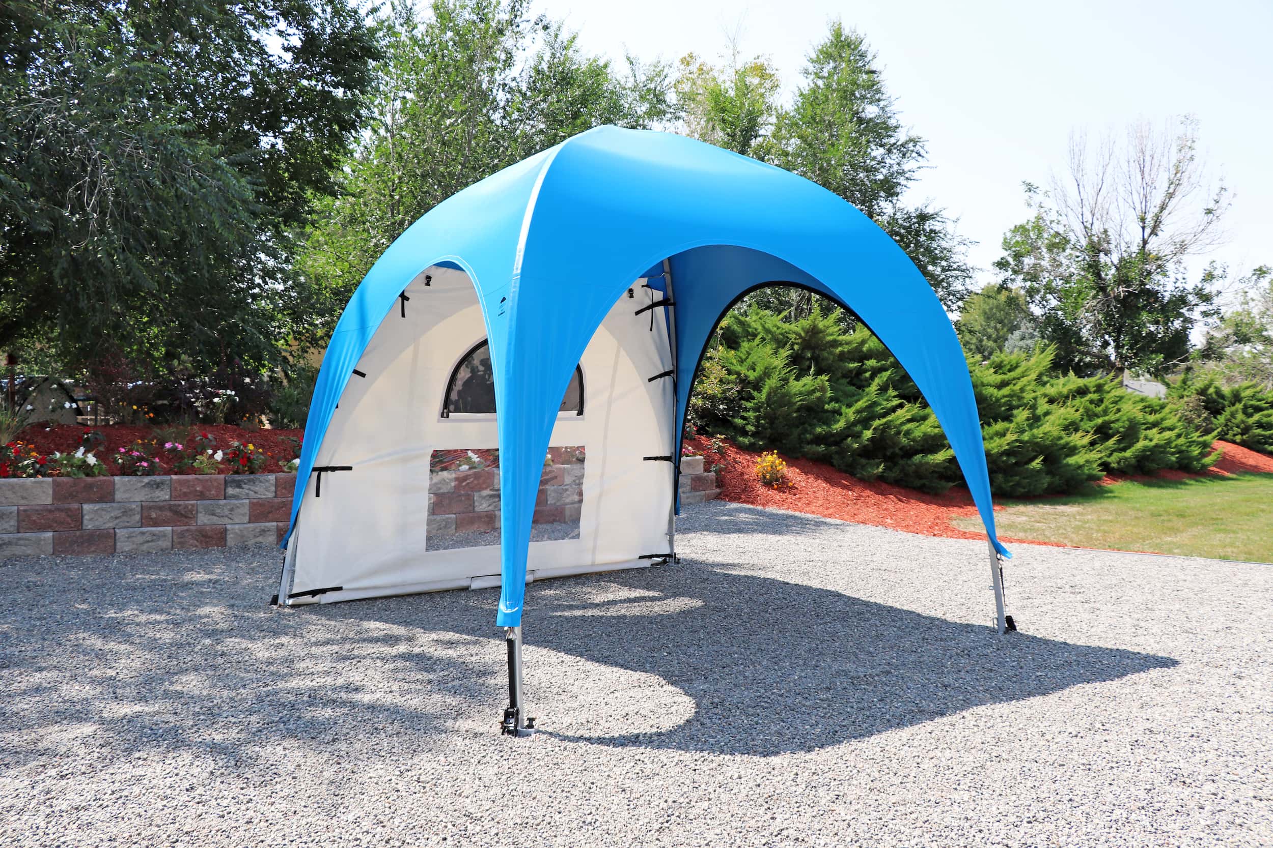 Inspired by the timeless elegance of old French architecture. This side curtain features a stylish transom with a semi-circular “Sunburst” design, reminiscent of the classic French buildings of Paris, where large windows are artfully divided into smaller panes for a touch of sophistication and charm. The semi-circular window is adorned with a screen mesh and a zippered clear-plastic cover. Elevate your WeatherPort® Canopy or outdoor event structure with a touch of Parisian flair and understated luxury.