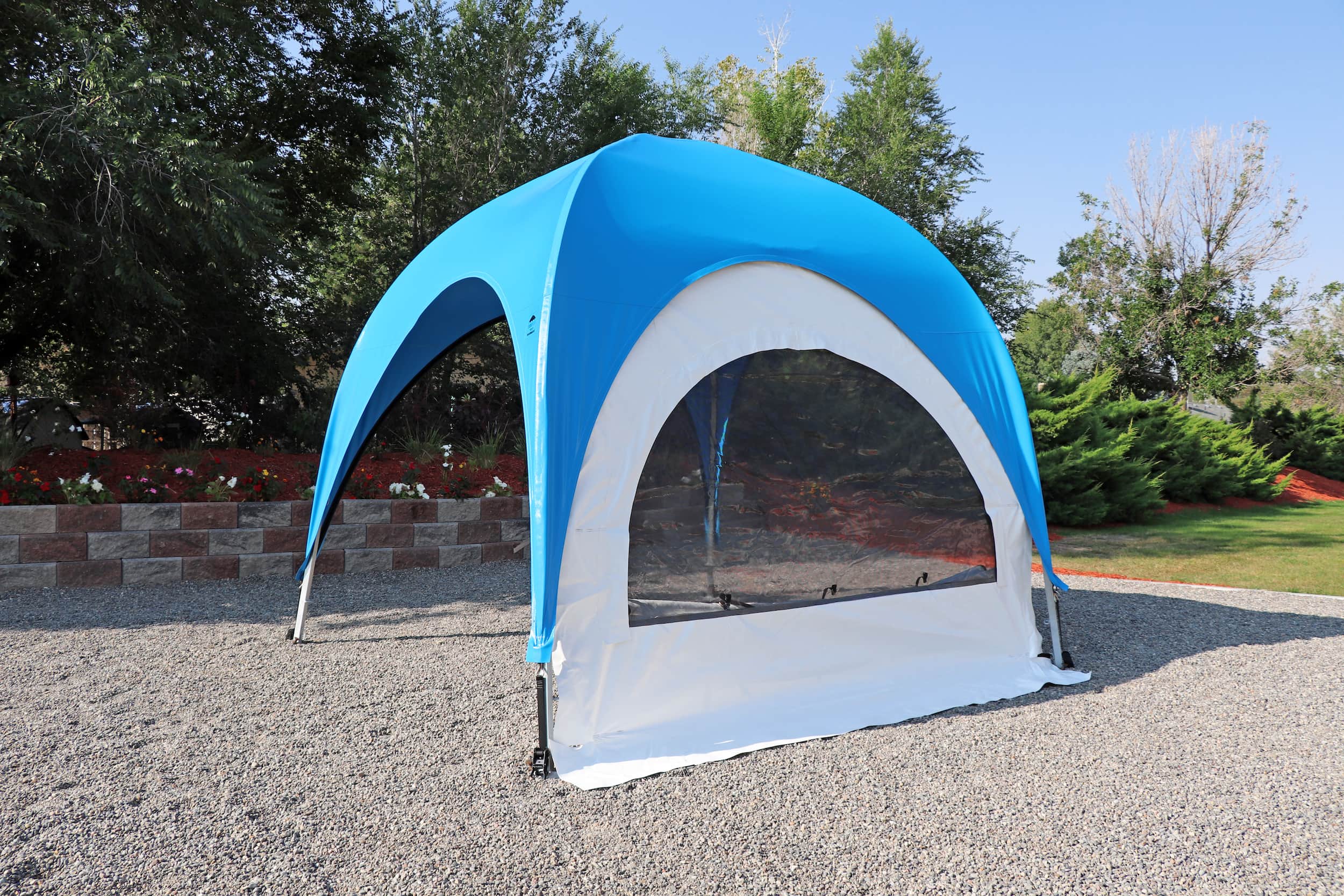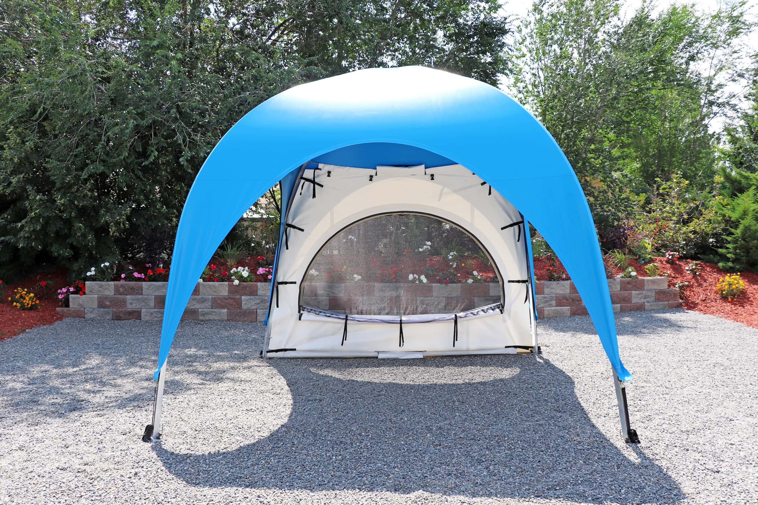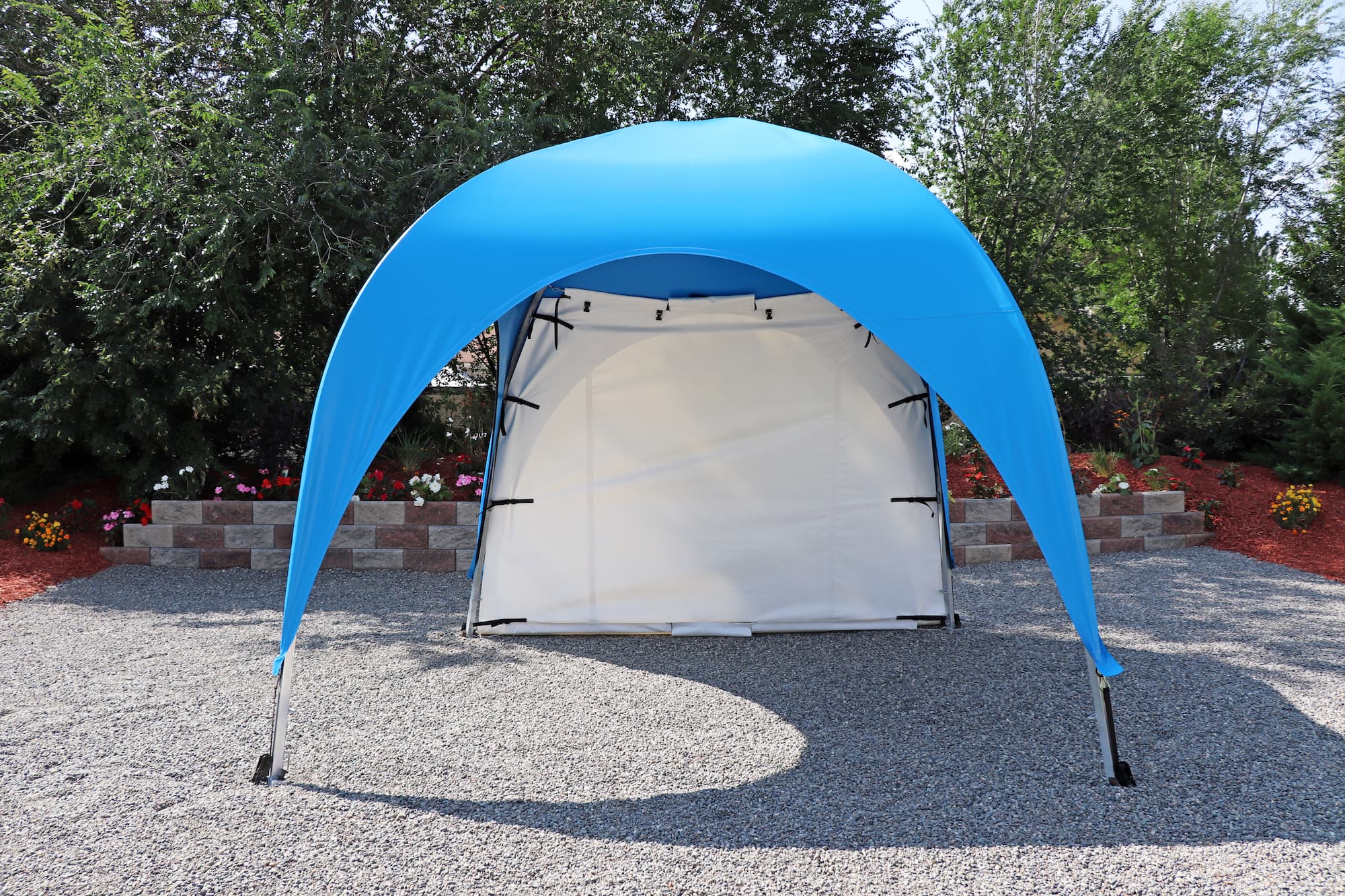 Fast and easy access to your WeatherPort® canopy or event structure. Access your canopy or event structure quickly, especially when other sides feature different curtain options. The double, heavy-duty zipper allows for quick and secure entry, with alligator clips at the top for effortless rolling and securing of the door panel. For additional comfort, consider adding a screen mesh door to maintain ventilation, sightlines, and an enhanced outdoor experience. In the face of changing weather conditions, simply close the door to enjoy the protected space provided by your WeatherPort® canopy or event structure.
